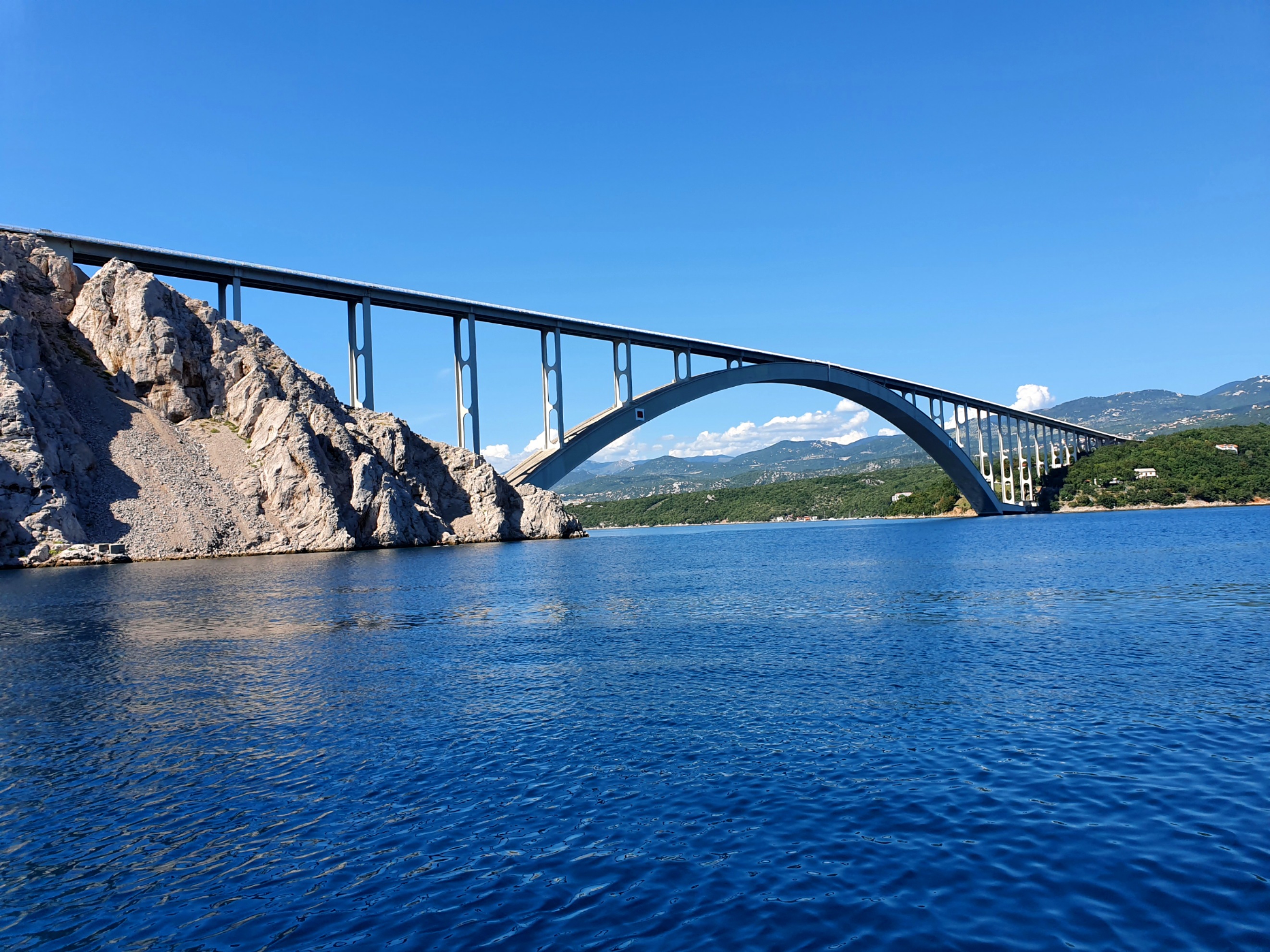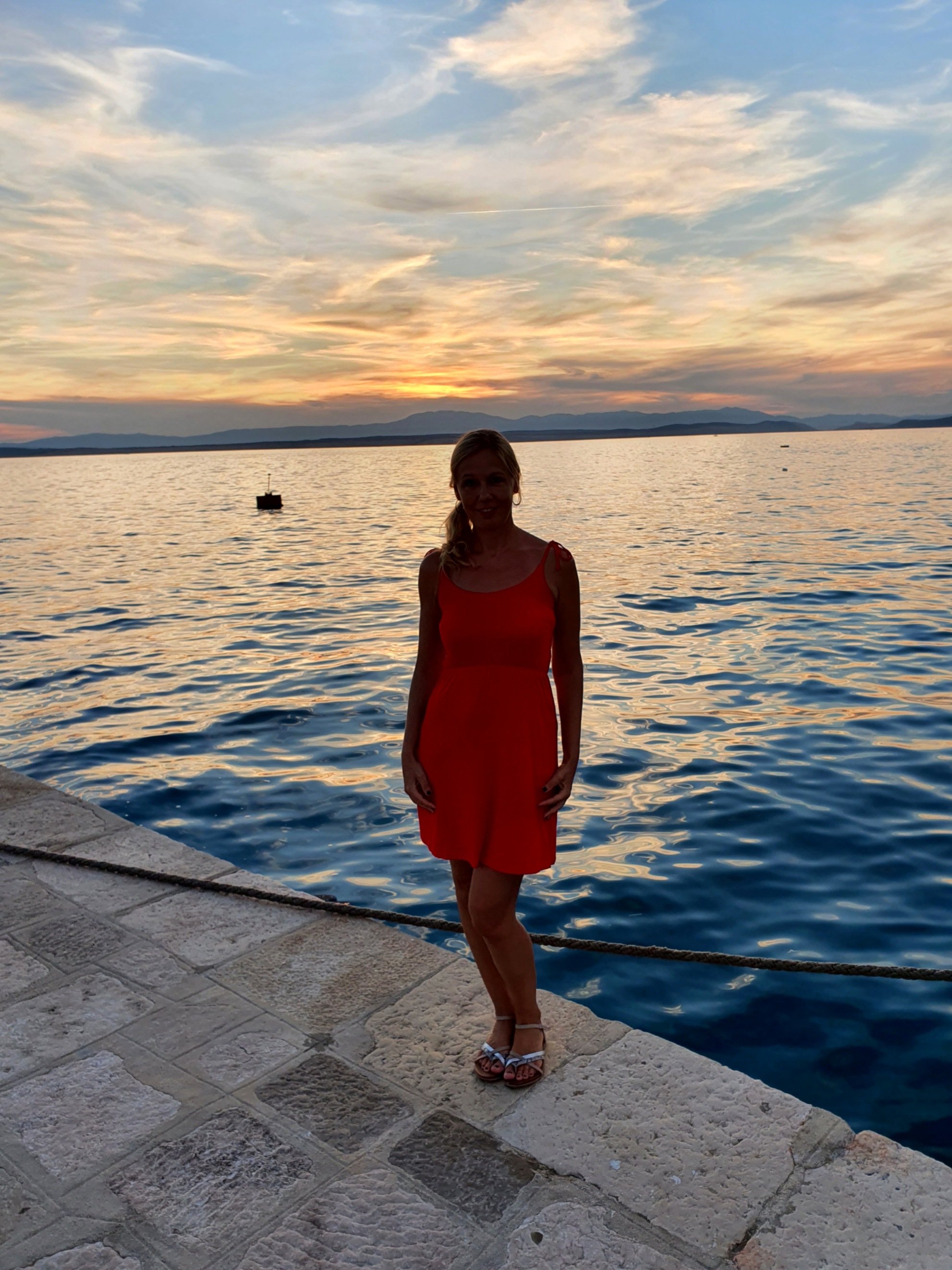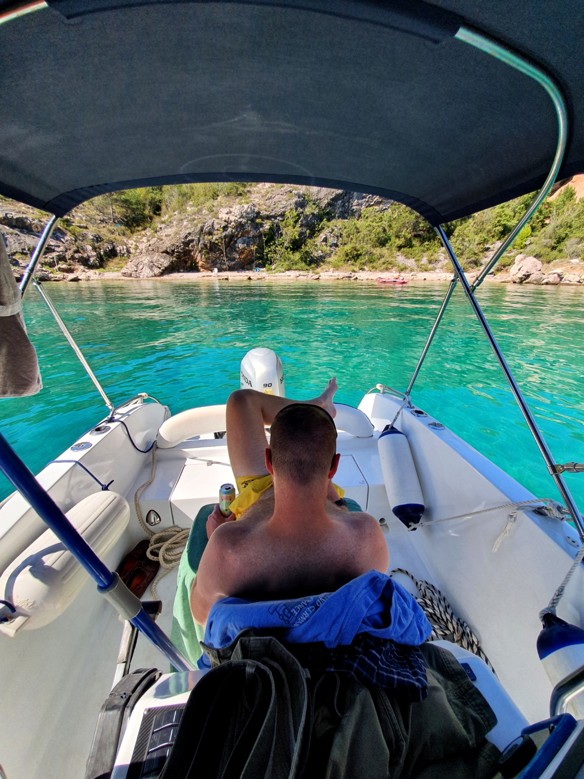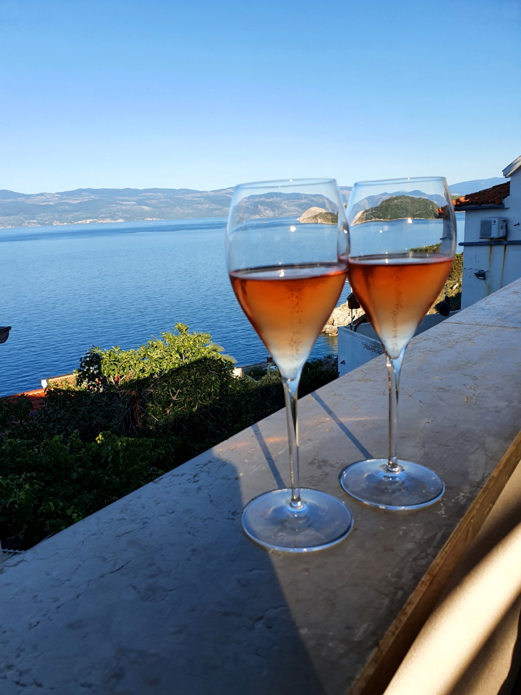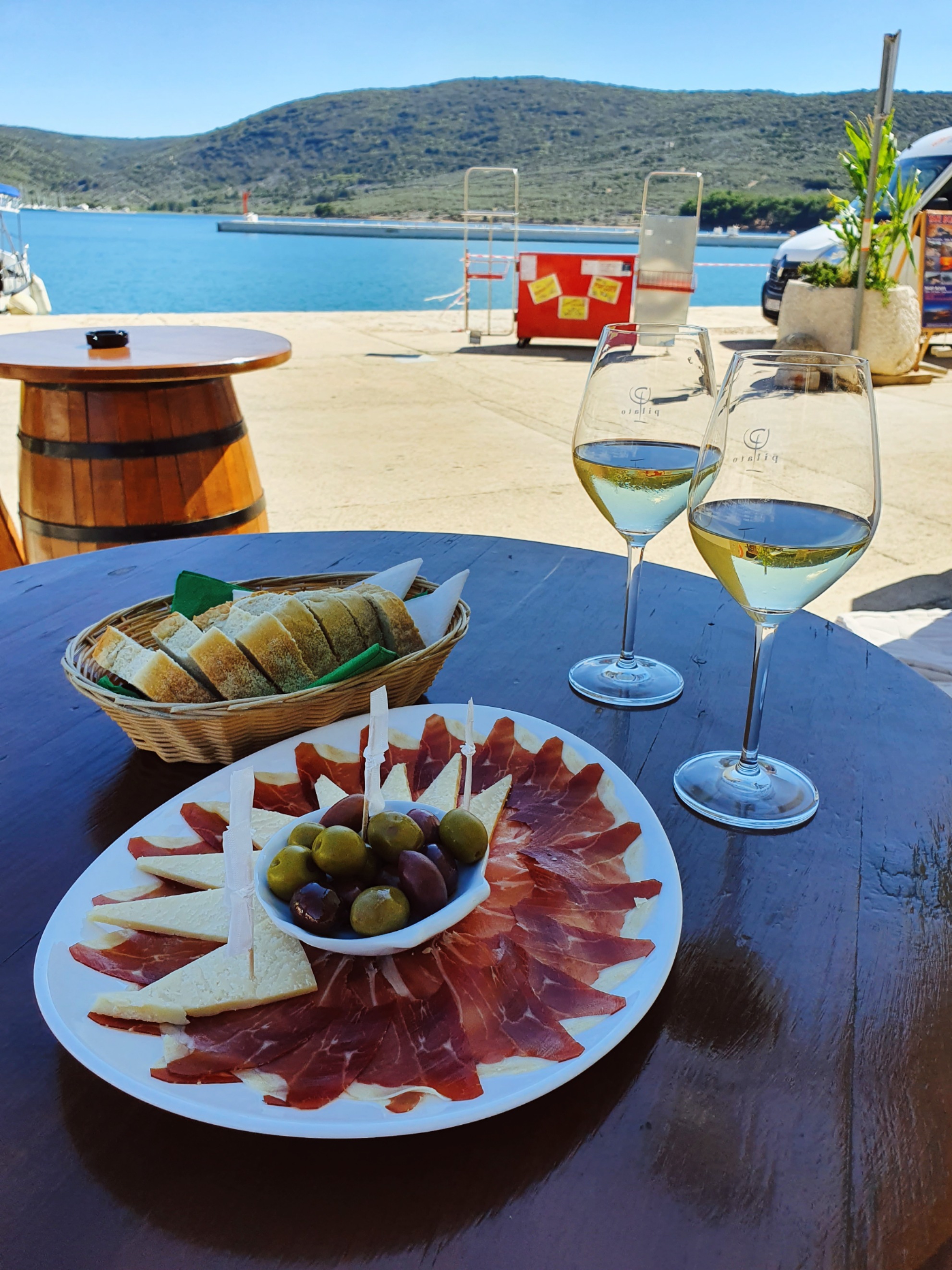 An unserem letzten Urlaubstag hatten wir uns nochmals ein Boot ausgeliehen und damit wollten wir für den Anfang einmal die andere Seite Richtung Krk Brücke fahren. Auf diesem Weg lag auch eine schöne Bucht, die ich schon auf meiner Laufstrecke immer wieder gesehen hatte. Hier sind wir dann wieder eine Weile zum frühstücken, schwimmen und einfach herumliegen und die Seele baumeln lassen geblieben, bis wir dann Richtung Brücke und dann wieder zurück gefahren sind. Den späten Nachmittag/Abend haben wir dann wieder in Vrbnik verbracht und sind dort im Restaurant Nada mit wundervollen Blick aufs Meer essen und auf Martins Geburtstag anstoßen gegangen. Das Essen war großartig, auch wenn ich für mich leider etwas Falsches bestellt hatte (typisch ich halt) und das Ambiente hier sowieso wirklich einfach traumhaft.