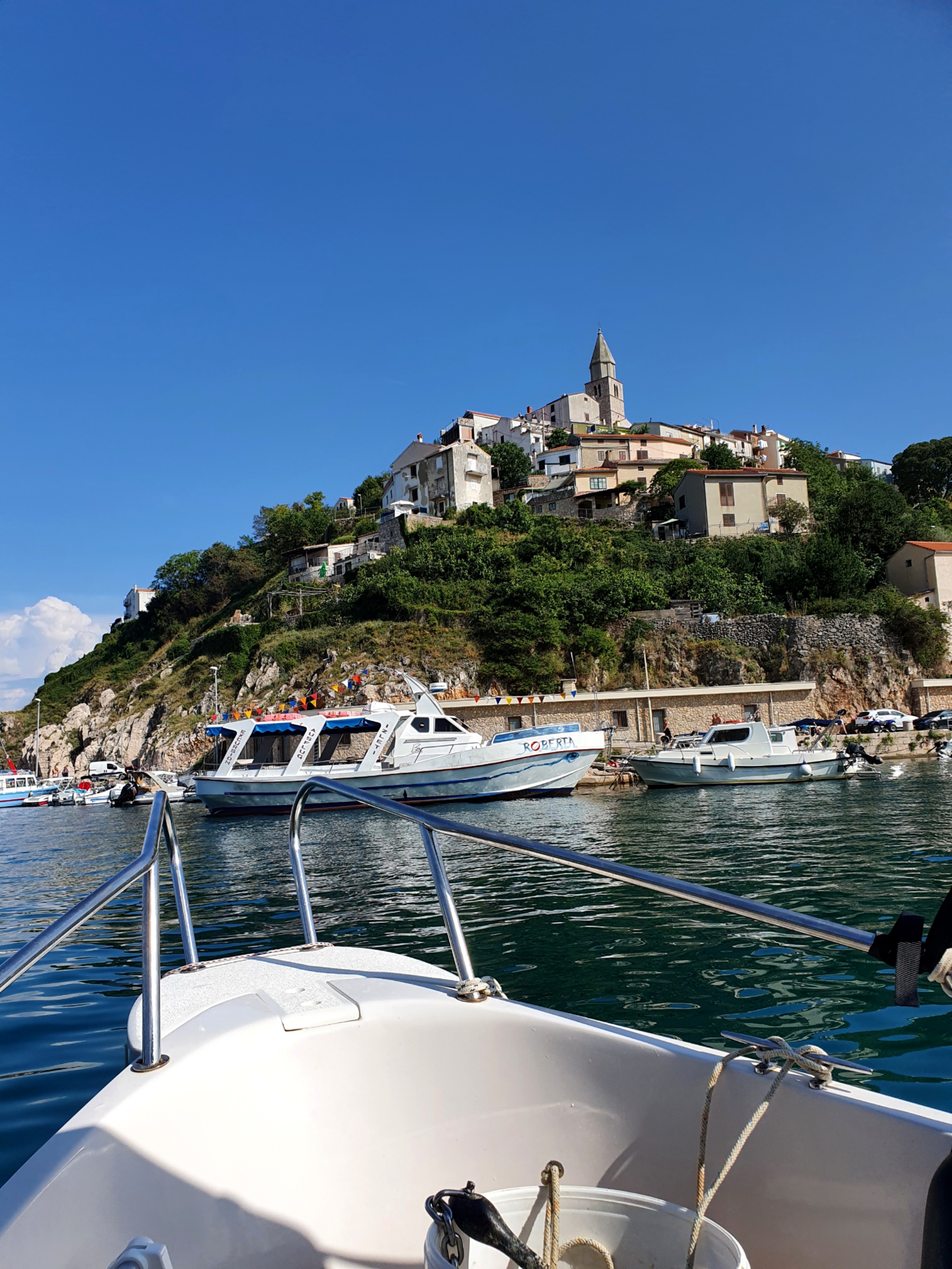 Dobrinj ist im Inselinnern, besitzt aber eine wirklich tolle Altstadt und einen grandiosen Ausblick. Eigentlich gibt es doch auch ein tolles Restaurant, aber weil dort eine spezielle Moskitoart zuhause war, die an mir ziemlichen Gefallen gefunden hatte, haben wir das dann doch lassen.